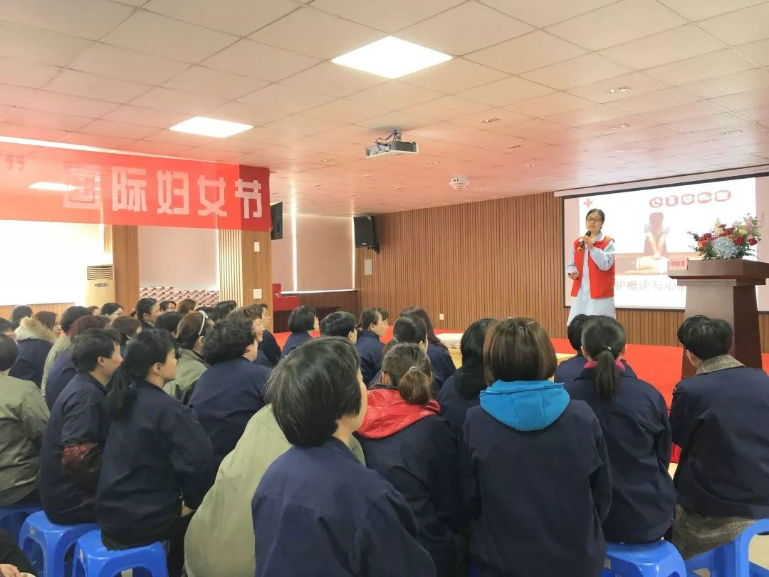 Den 7 mars, kvinnliga anställda på Zhejiang Jufeng och det kommunala kvinnosjukvårdssjukhuset