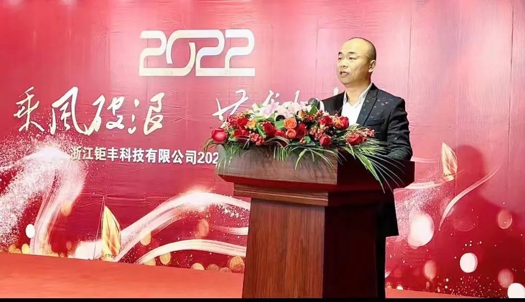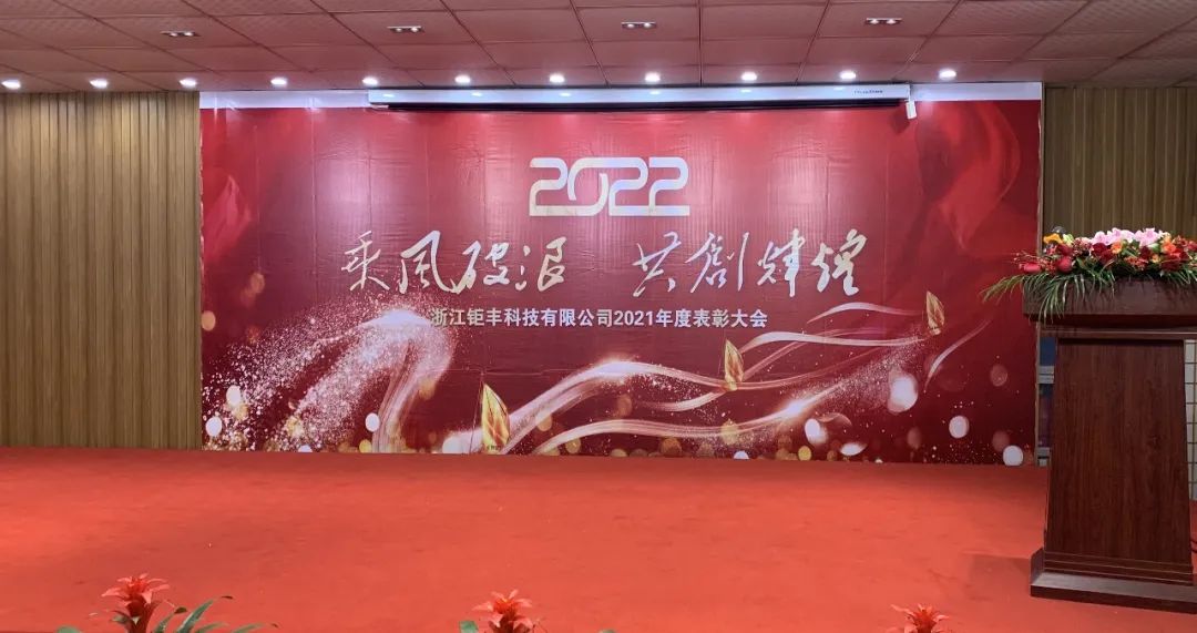 "Den gyllene kon trampar på blommorna och jadetigern välkomnar våren." På denna vackra dag när allt är förnyat, på morgonen den 22 januari 2022, höll Zhejiang Jufeng Co., Ltd. en kort, enkel men ceremoniell årlig lovordnad generalförsamling för 2021.